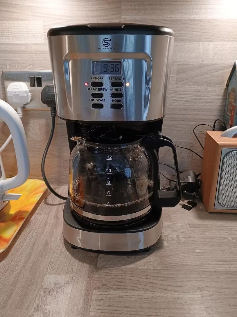 - Multi-Function Buttons: Features six function buttons – ON/OFF, Strength, Delay Brew, Program, Minute, and Hour adjustments – for versatile and user-friendly operation.